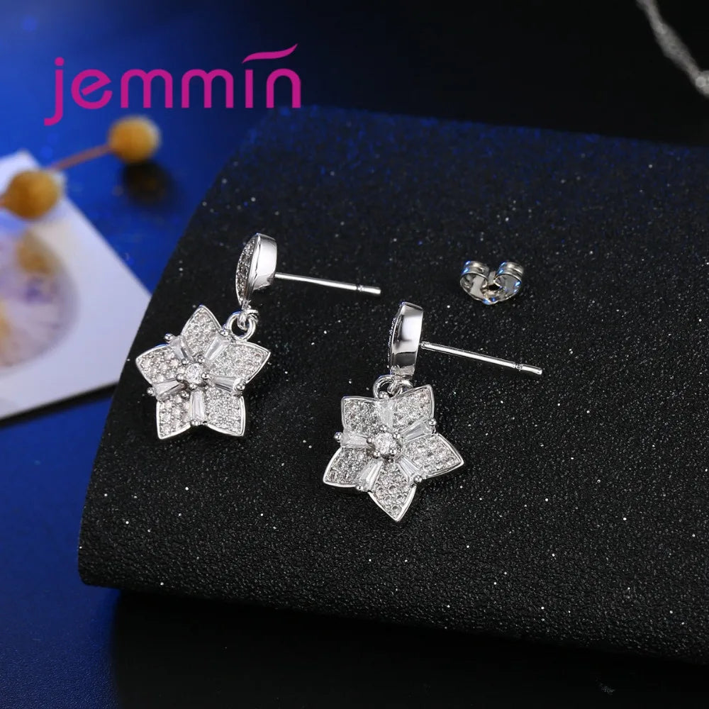 Elegant Genuine 925 Sterling Silver Shinning Crystal Flower