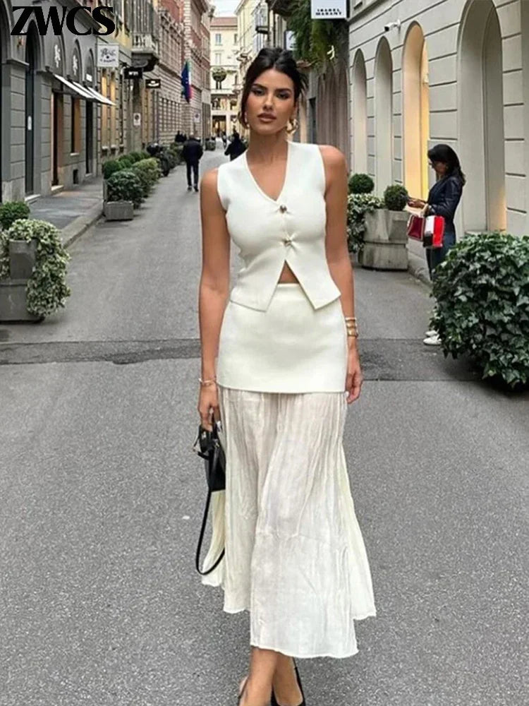 Elegant Knit Vest Patchwork Skirts Suit Women Slim.